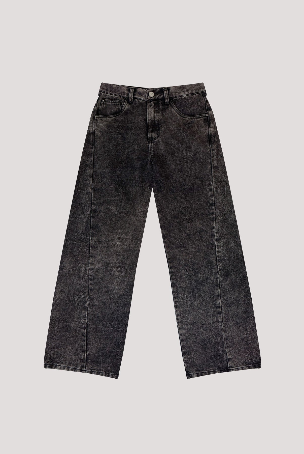 Jean acampanado en tono gris, elaborado en tejido dril 100% algodón. Incorpora cortes funcionales en los costados para aportar estructuración y un acabado estético diferenciado. Cuenta con un fit acampanado que ofrece caída fluida desde la rodilla hasta el bajo.